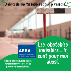 Description d’image – Affiche de sensibilisation de l’AÉRA : « Les obstacles invisibles… le sont pour moi aussi. » (Visuel 5)